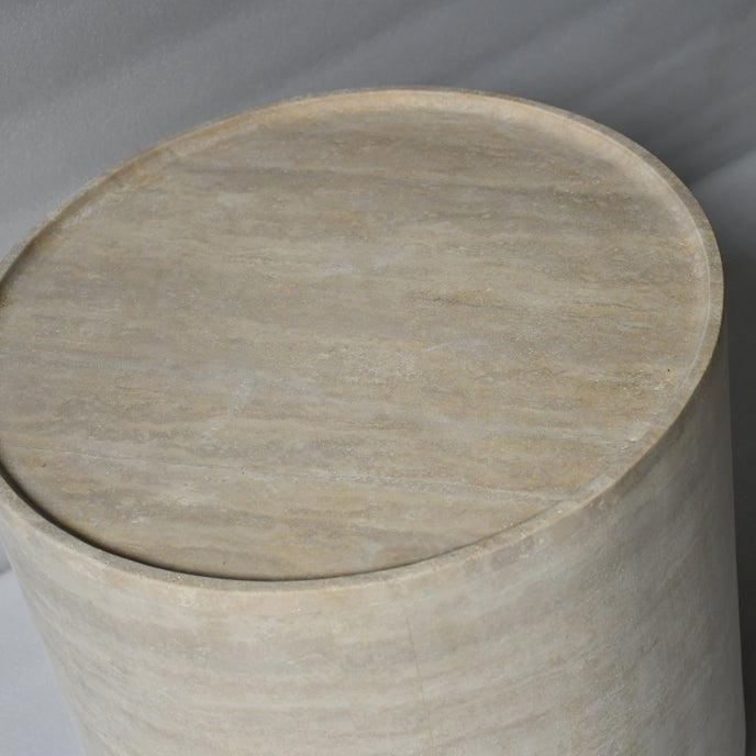 Pietra célèbre la beauté brute de la pierre naturelle. Son travertin authentique révèle des veines organiques uniques qui racontent l'histoire de la matière. Une structure légère et épurée qui transforme cette table d'appoint en sculpture minérale contemporaine.