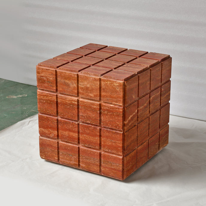 Solara célèbre les nuances chaudes de la pierre naturelle. Son travertin orange aux veines organiques crée une présence solaire et apaisante. Une forme épurée qui transforme cette table d'appoint en sculpture minérale contemporaine pleine de caractère.